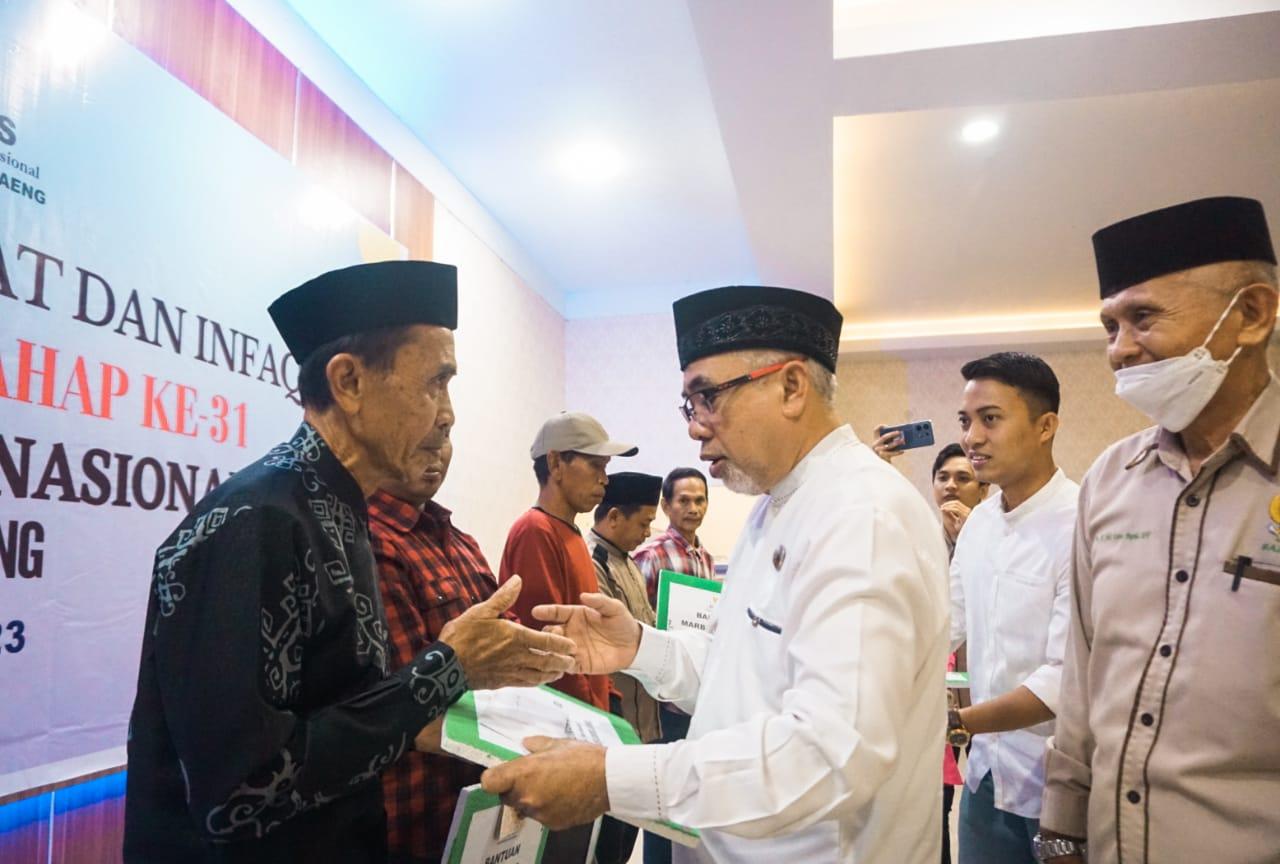 Kepala Baznas, H.Karim Bagada menyampaikan bahwa bantuan yang diserahkan kepada Fakir Miskin Konsumtif, Marbot masjid, penggali kubur, bantuan usaha produktif, bantuan pembangunan masjid, bedah rumah dan penyelesaian study bagi mahasiswa, akan di salurkan mulai hari ini sampai tanggal 27 juni mendatang berjumlah kurang lebih 1M. (TA)