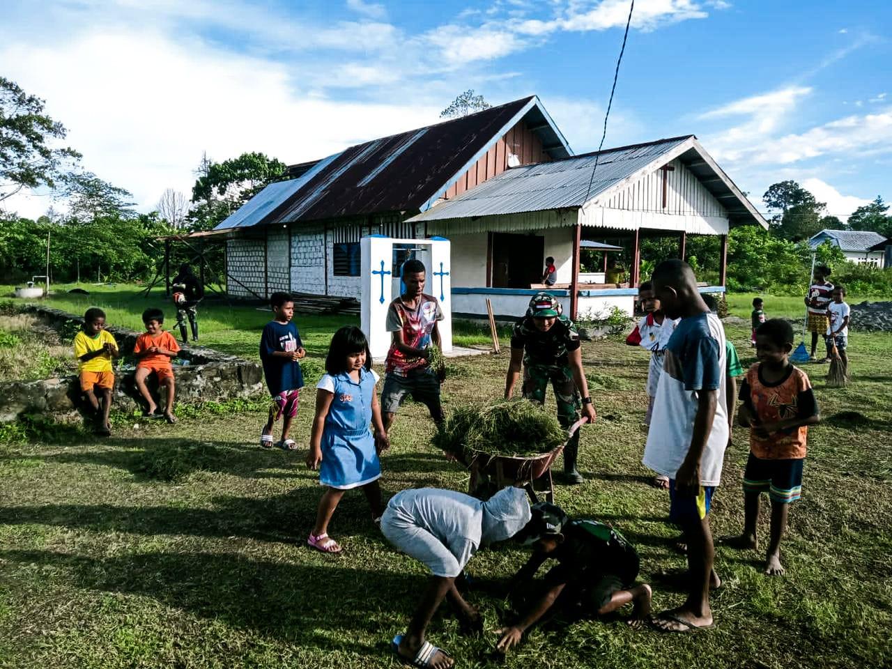 “kegiatan ini sebagai wujud kemanunggalan TNI dengan masyarakat perbatasan Papua. Kegiatan karya bakti ini juga bertujuan membantu masyarakat setempat menjaga agar Gereja selalu bersih sehingga pada saat digunakan untuk beribadah bisa lebih hikmat,” ungkap Danpos Ujung Karang.