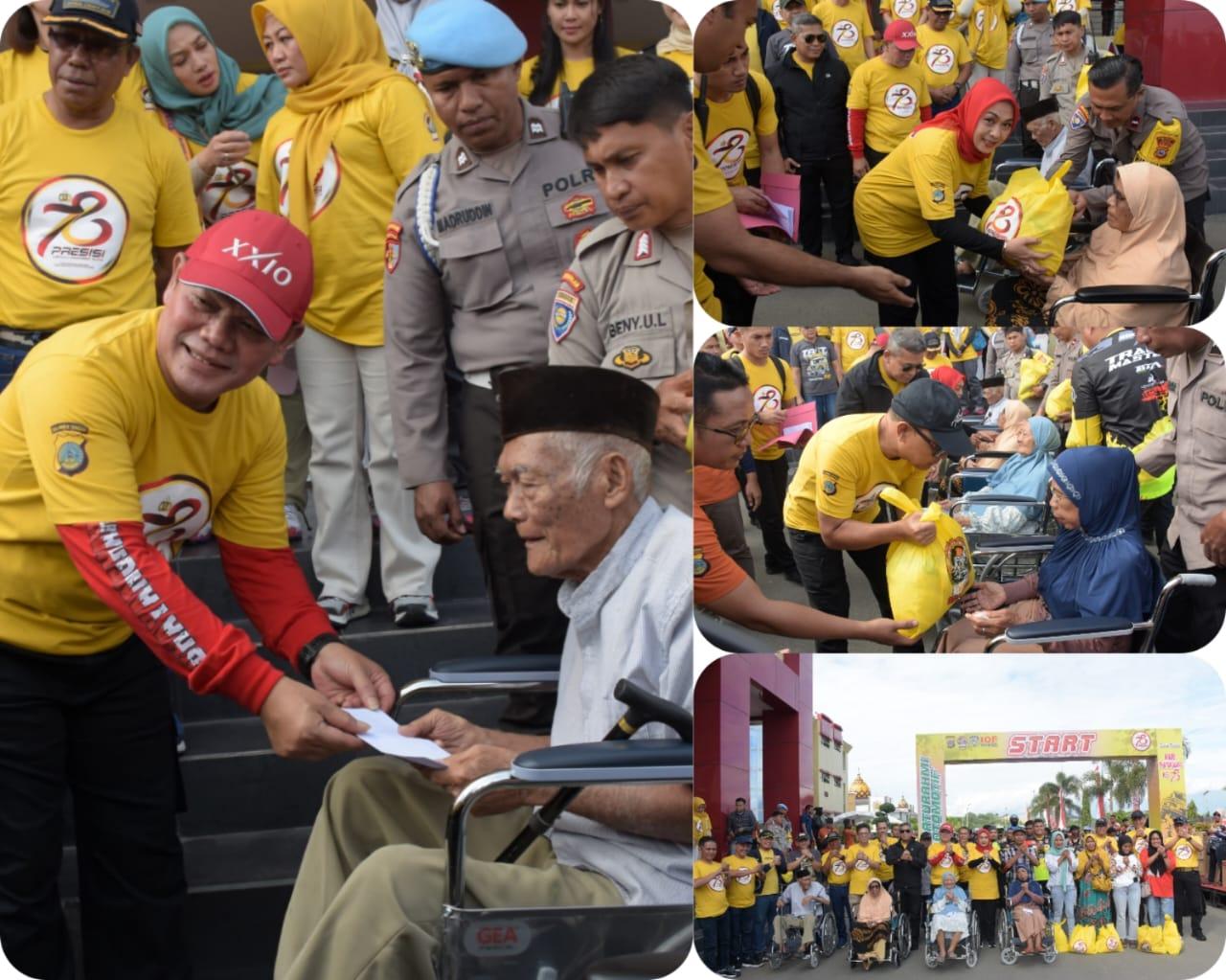 Penyerahan kursi roda dan paket sembako dilakukan sebelum diberangkatkannya peserta Bhayangkara Silaturahmi Otomotif.