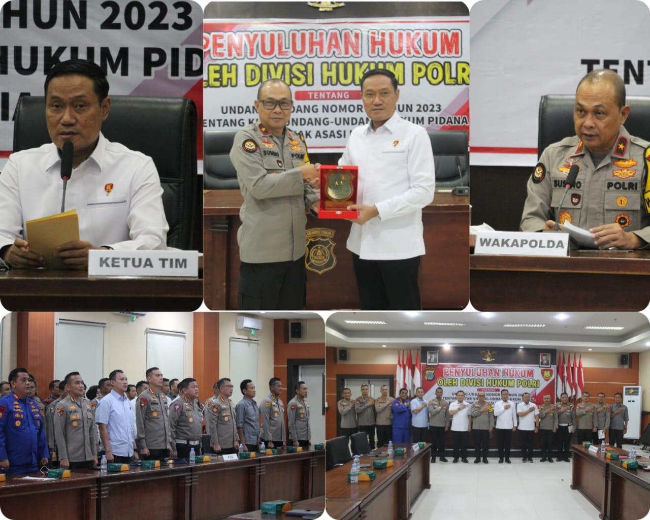 PALU – Tim Divisi Hukum (Divkum) Polri dipimpin Brigjen Pol. Dr. Rakhmad Setyadi, S.I.K., S.H., M.H memberikan penyuluhan hukum tentang Kitab Undang Undang Hukum Pidana (KUHP) dan Hak Azasi Manusia (HAM) kepada personel Polda Sulteng di Ruang Rupatama, Selasa (21/5/2024).