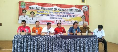 KOTA BEKASI – Pemerintah Kota Bekasi melalui dinas Perkimtan dinas BMSDA dan dinas Lingkungan Hidup, senergitas dalam rangka mengoptimalkan serta memenuhi tugas dan fungsi Lembaga Pemberdayaan Masyarakat (LPM) Kecamatan Bekasi Utara adakan Sosialisasi di bidang Pengawasan Pembangunan, bagi LPM BKM FKRW dan Pokja Banjir serta didukung penuh oleh Camat Bekasi Utara diaula Kantor Kecamatan Bekasi Utara, Selasa (29/04/25).