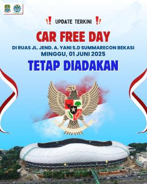 “Car Free Day pada minggu 1 Juni 2025 ini tetap dilaksanakan, mengingat Upacara Hari Lahir Pancasila Tingkat Kota Bekasi jadwalnya menjadi Senin 2 Juni 2025 bertempat di Plaza Pemkot Bekasi,” ujar Kepala Dinas Lingkungan Hidup.