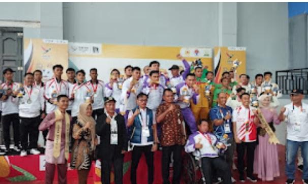 Medali emas untuk Provinsi Gorontalo diserahkan oleh Asisten Pemerintahan, Keistimewaan Aceh dan Kesra Syahrizal Fauzi, SST. MAP, dan Drs. Jumaidi Ishak, SE. M.Ec. Dev (Wakil Ketua III Umum dan Perencanaan PB -PSTI), Kadisparpora Kabupaten Aceh Timur Syahril, SSTP. MAP.