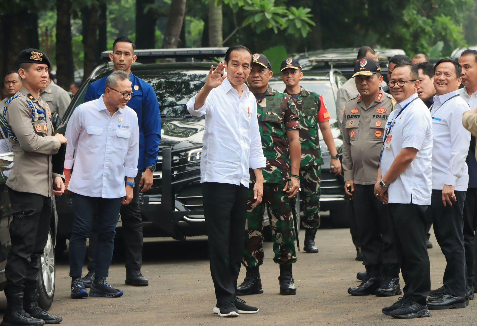 Pj. Wali Kota Bekasi, Gani Muhamad menyambut langsung, kedatangan Presiden Joko Widodo bersama Menteri BUMN Erick Thohir, Menteri Perdagangan Zulkifli Hasan, Direktur Utama Pemodalan Nasional Madani (PNM) Arief Mulyadi, dan Pj. Gubernur Jawa Barat. Bey Machmudin.