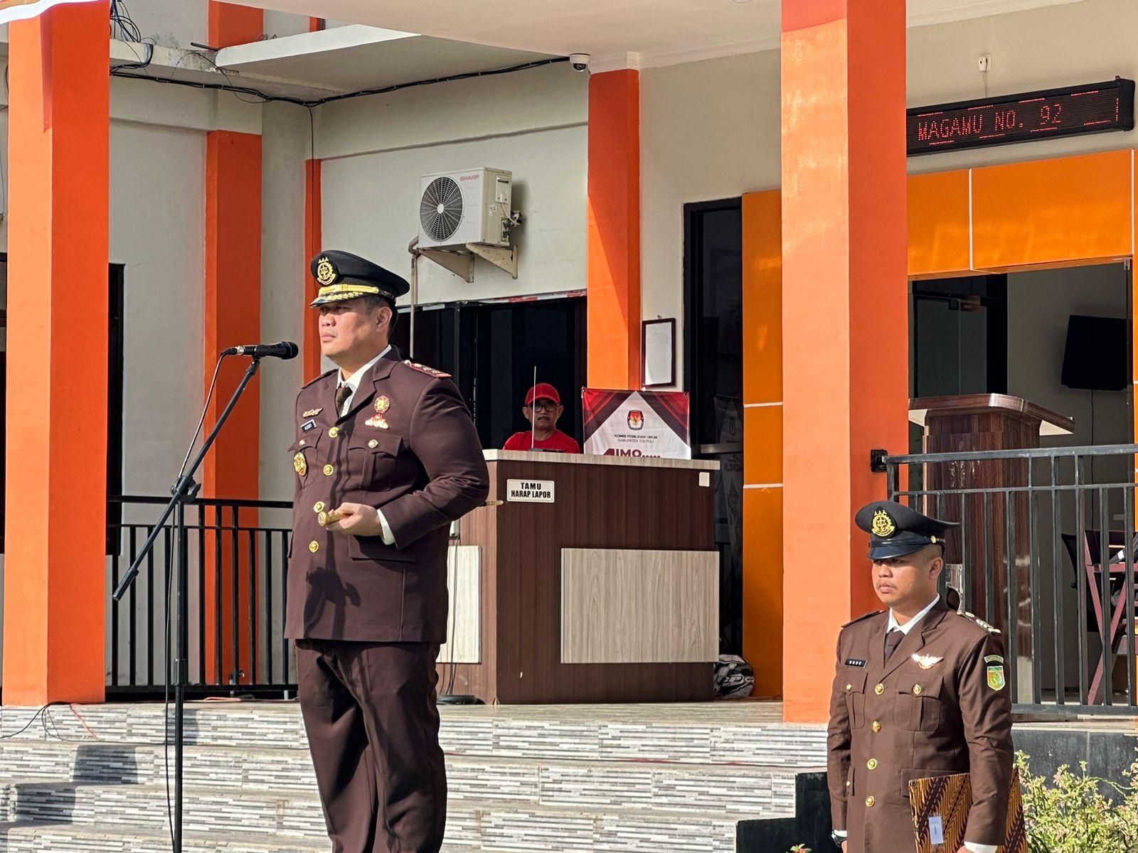 Kepala Kejaksaan Negeri Tolitoli Albertinus P.Napitupulu selaku Inspektur Upacara dalam sambutannya mengatakan, kegiatan ini merupakan bentuk komitmen dari Kejaksaan Negri Tolitoli Untuk menjaga Marwah dan Integritas lembaga penegak Hukum serta memperkuat koordinasi antar cabang dalam melaksanakan tugas dan fungsi penuntutan diwlayah Hukum Kabupaten Tolitoli.