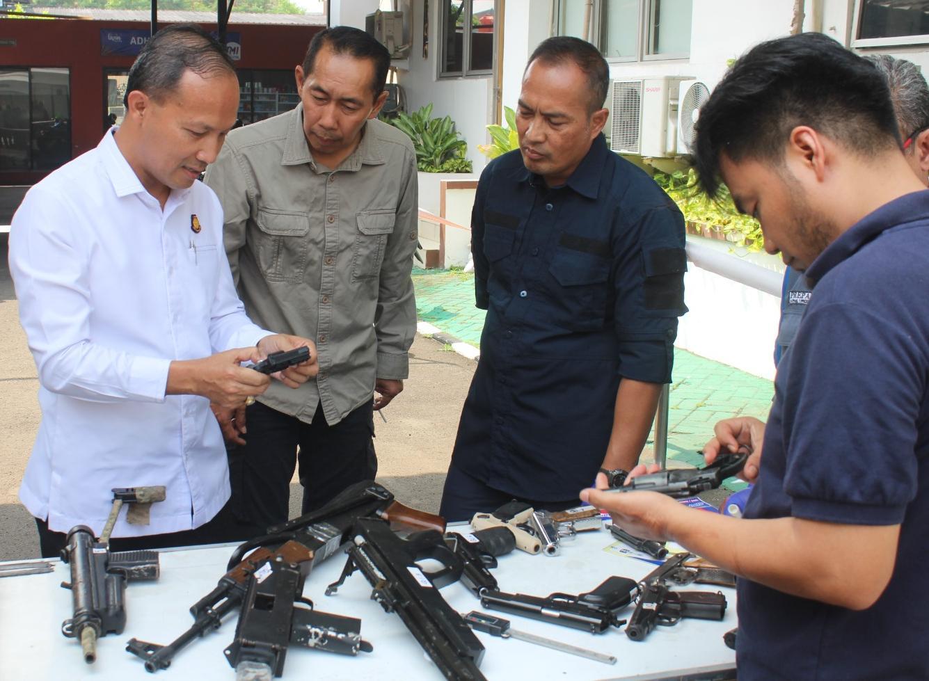 “Barang bukti yang di verifikasi ada senjata laras Panjang, senjata laras pendek, amunisi, komponen senjata, rakitan upper senjata, laras senjata, peredam pistol, dan magazine senjata,” ujarnya.
