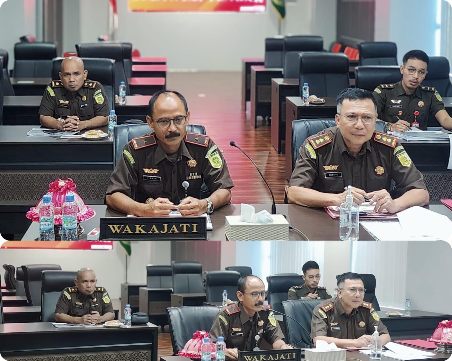 PALU – Wakil Kepala Kejaksaan Tinggi Sulawesi Tengah, Pipuk Firman Priyadi, S.H., M.H, bersama Kepala Kejaksaan Negeri Buol, Adhitya Trisanto, S.H., M.H, memimpin permohonan penghentian penuntutan melalui Kejaksaan Negeri Buol di Ruang Vicon Lantai 3, Kantor Kejaksaan Tinggi Sulawesi Tengah, Senin 19 Februari 2024.