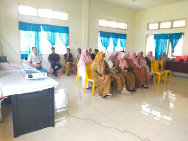 Terlihat narasumber dari DP3AKB, sedang melanjutkan pemaparan materi sosialisasi terkait Imunisasi kepada seluruh peserta, yang disaksikan oleh Forkopincam Darul Ihsan.(@ R-74).