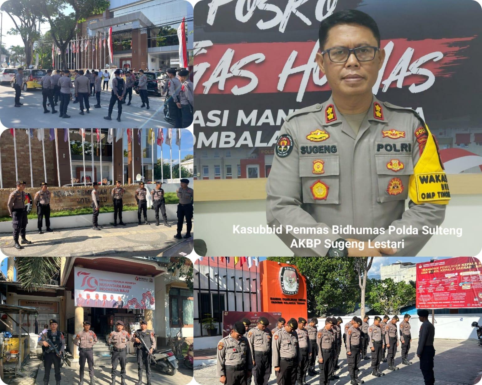 PALU – Polda Sulawesi Tengah (Sulteng) melalui Satuan Tugas Operasi Mantap Praja (Satgas OMP) Tinombala 2024 memperkuat pengamanan Komisi Pemilihan Umum (KPU) Sulteng menjelang penetapan pasangan Calon Kepala Daerah (Cakada) Gubernur dan Wakil Guibernur Sulteng pada Pilkada tahun 2024.