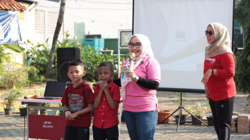 “Jadilah anak yang baik saling menyayangi dan tumbuh menjadi generasi emas yang membanggakan Indonesia di masa depan,” pesan Ketua TP PKK Kota Bekasi di hadapan para siswa.