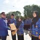 Saksi Massyura yang merupakan korban lakalantas mulai memasuki ruang sidang menggunakan kursi roda didorong oleh petugas di pengadilan Negeri Aceh Timur, Rabu 30/07/2025.