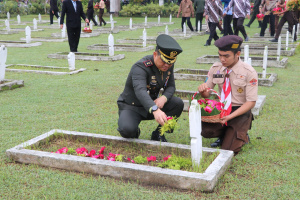 Upacara kemudian dilanjutkan dengan prosesi tabur bunga di pusara para pahlawan sebagai bentuk penghormatan dan penghargaan atas jasa-jasa mereka.