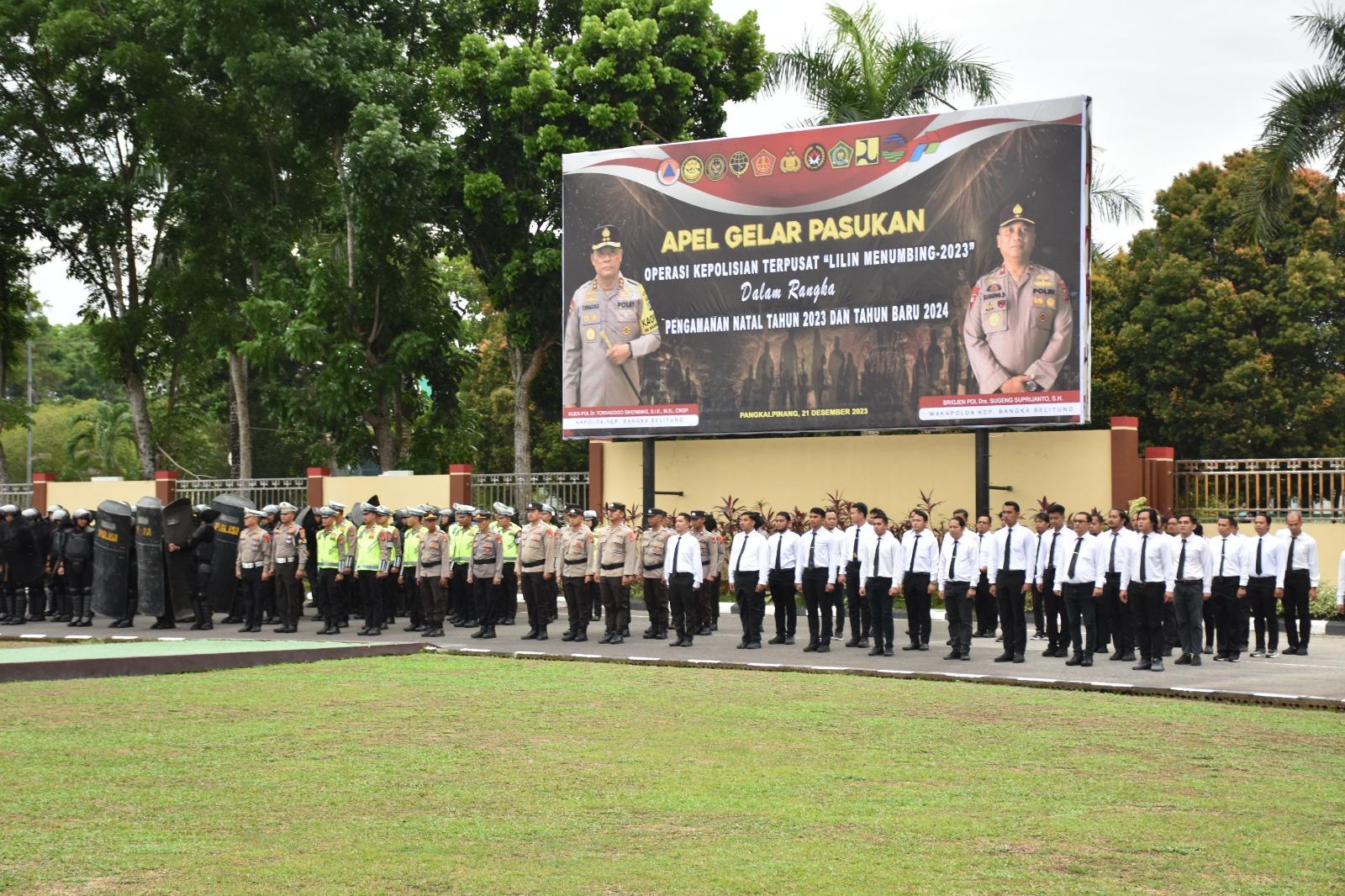 Dalam Operasi Lilin Menumbing 2023, sebanyak 1.585 Personel Gabungan dikerahkan, 33 Pos yang terdiri dari 21 Pos Pengamanan, 9 Pos Pelayanan dan 3 Pos Terpadu yang tersebar diseluruh wilayah hukum Polda Bangka Belitung. (bai)
