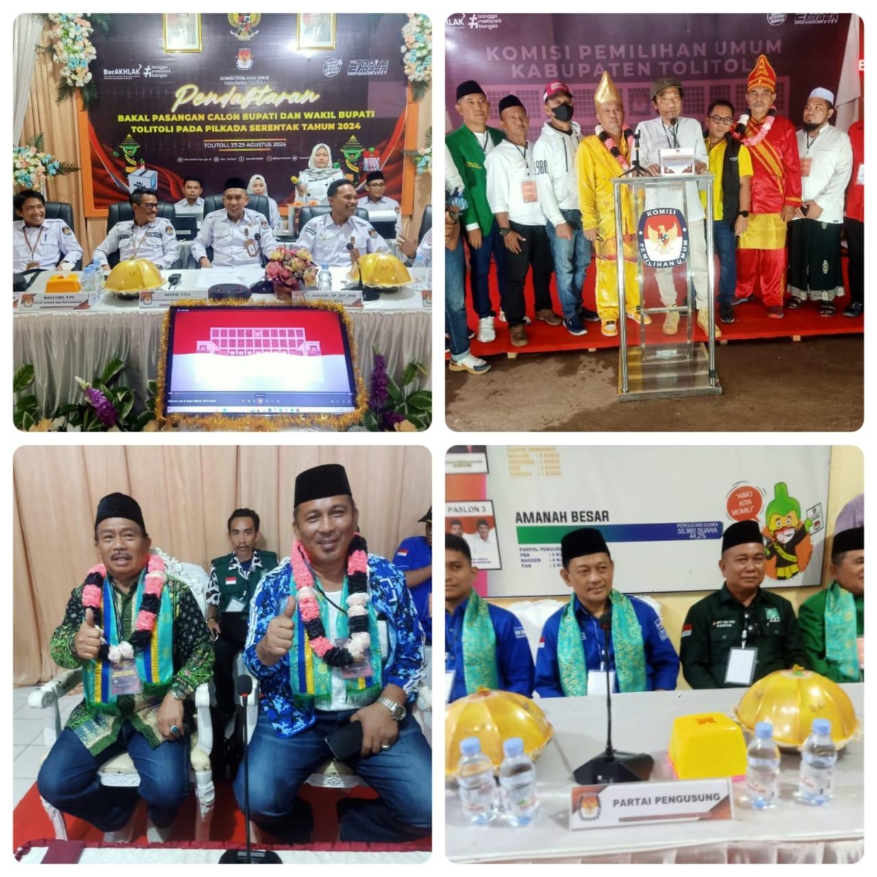 Kedua Paslon Bupati dan Wakil Bupati Tolitoli, mereka di antar dari Para Ketua Partai Koalisi Pengusung.Serta Dari Para Pendukung dan Simpatisan kedua Pasangan.