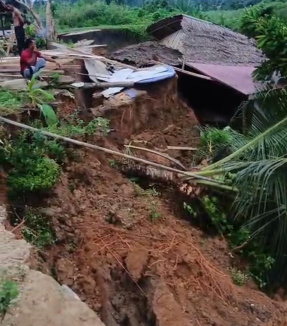 “Alhamdulillah, warga membantu saya mengeluarkan barang seperti pakaian, lemari, dan tempat tidur. Sekitar pukul 9 malam, tanah longsor total dan rumah saya jatuh ke sungai,” tambahnya.