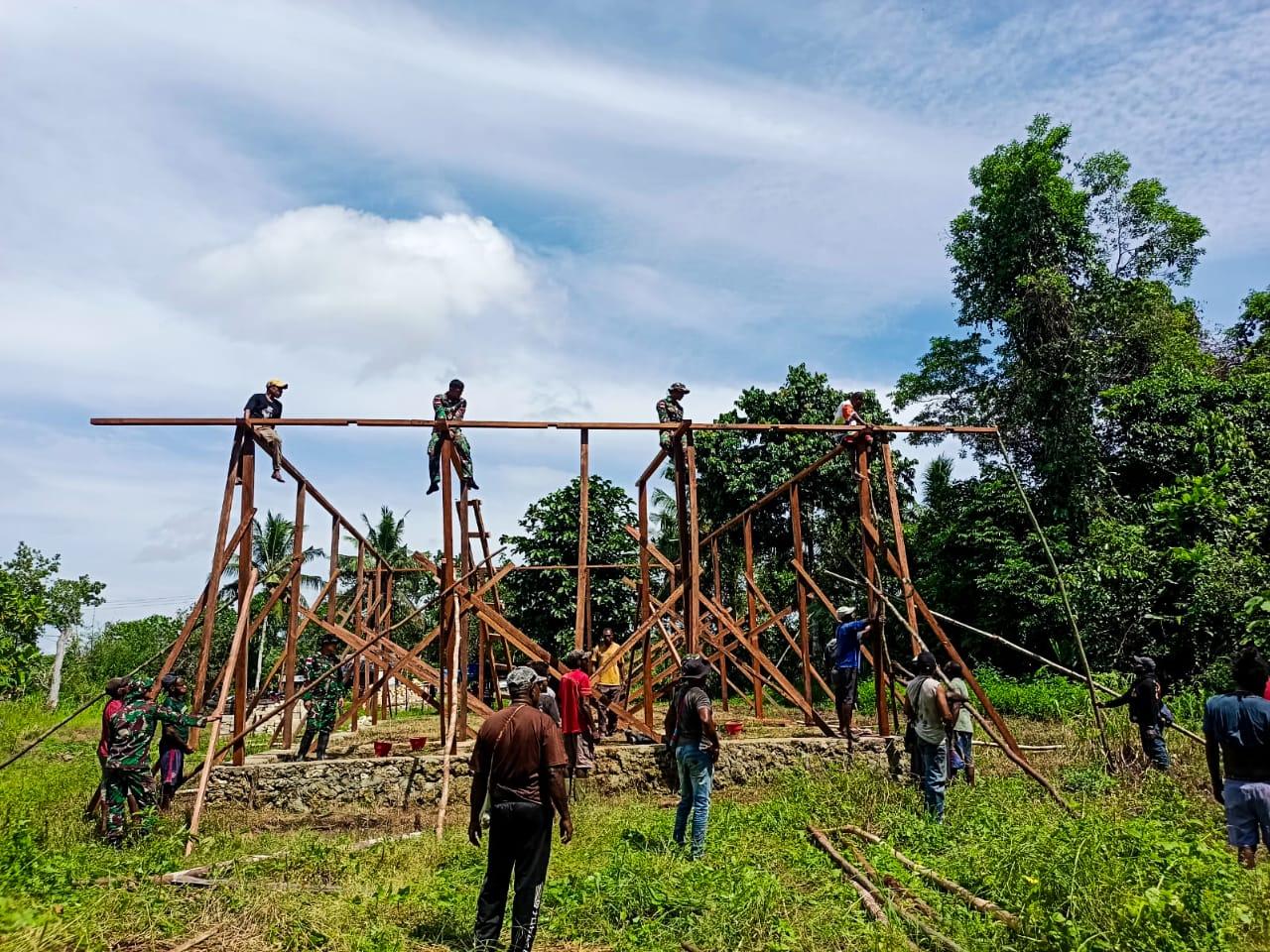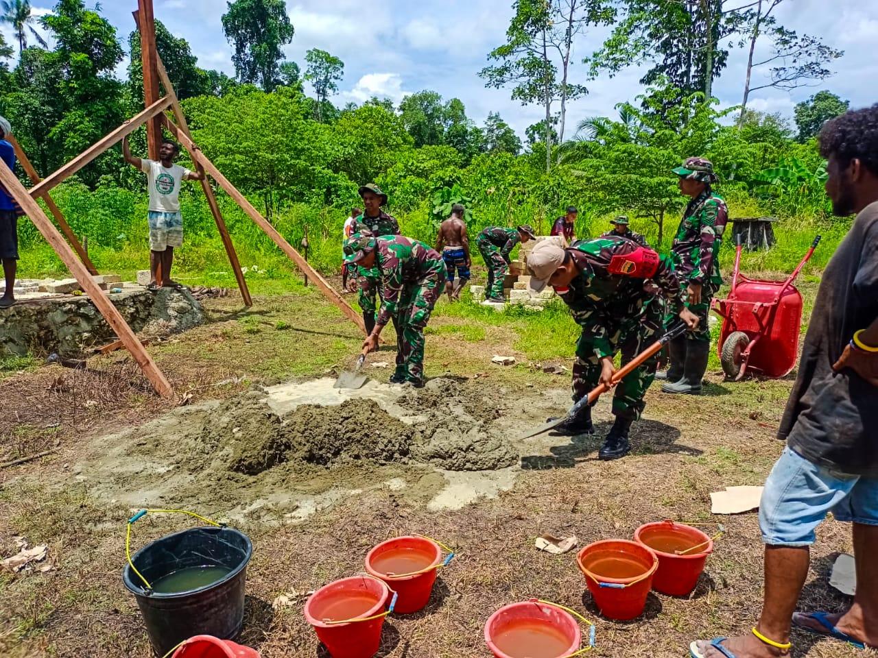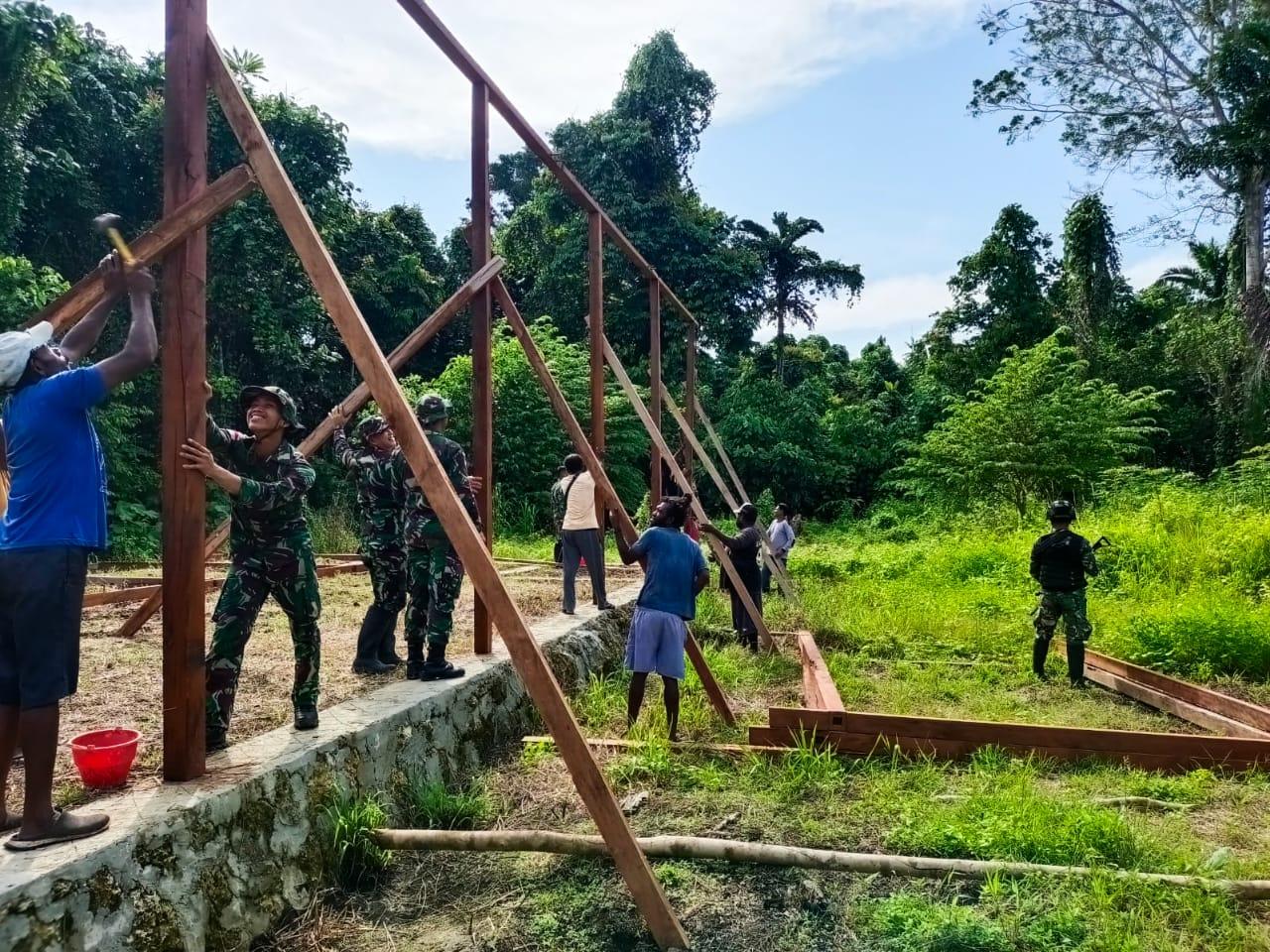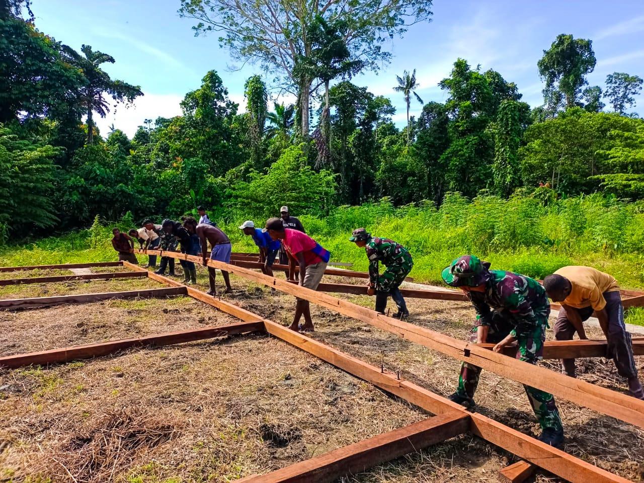 Manunggal Dengan Rakyat, Satgas Yonif 122/TS Pos Yamara Bantu Bangun Gereja GKI Eden Yanemyo Di Perbatasan Papua