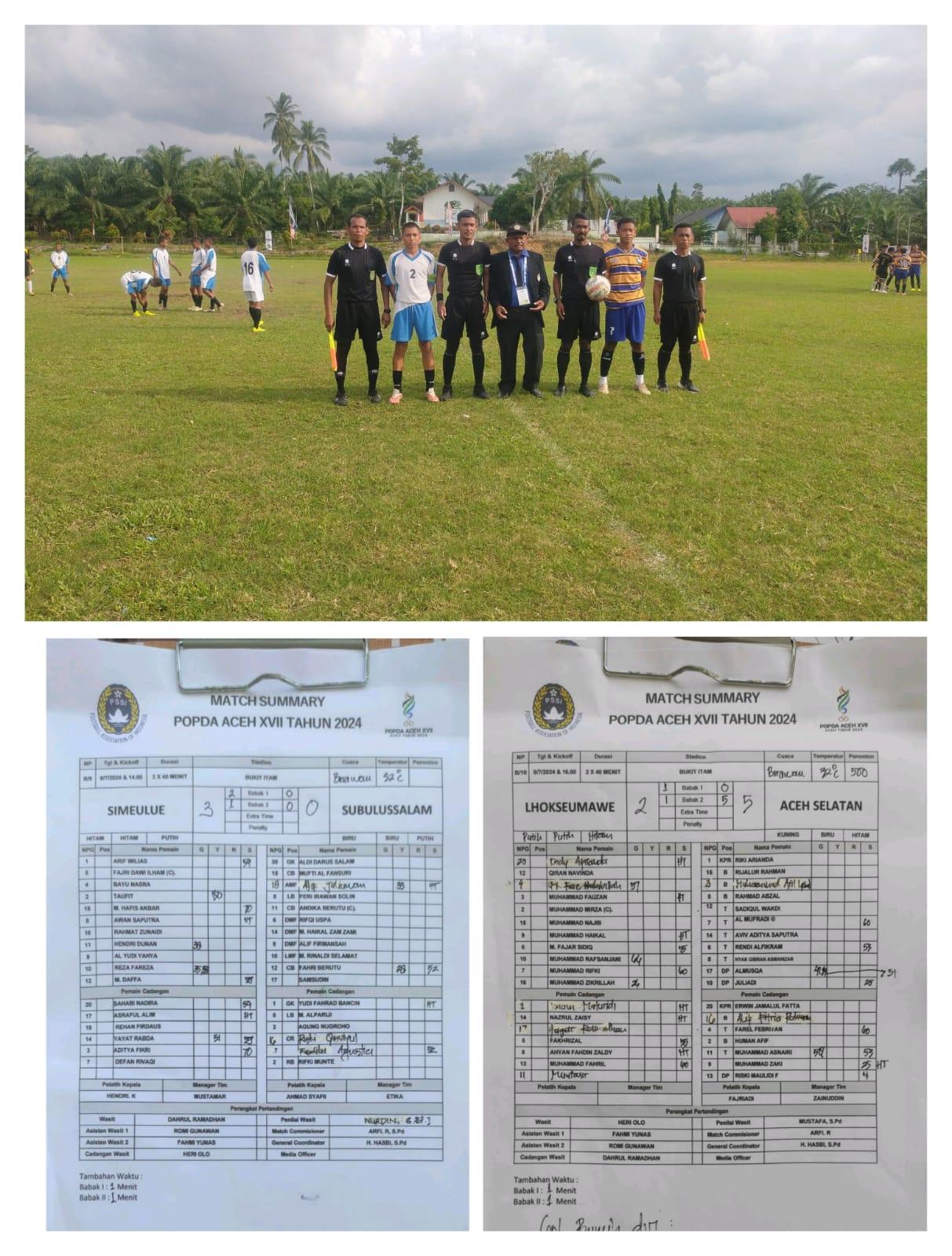 “Untuk Pertandingan ( I ) Pukul 14.00 wib dengan durasi waktu 2 x 40 menit dan ada penambahan waktu babak(1) 1 menit dan babak ke (2) 1 menit, kesebelasan Simeulue berhadapan dengan Subulussalam dengan hasil gol 3 – 0, dimenangkan oleh Simeulue yang dicetak oleh Reza sebanyak 2 gol, kemudian disusul gol ke 3 melalui kaki Hendri Dunan 1 gol sampai usai pertandingan babak (1) 2-0 dan babak ke (2) 1-0 dan sampai wasit meniup pluit panjang score tidak berubah dan berakhir 3 – 0 untuk Simeulue.