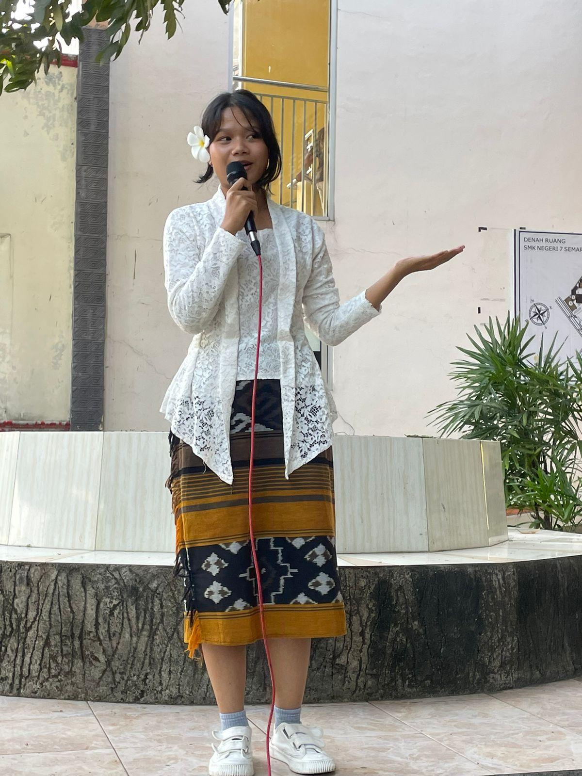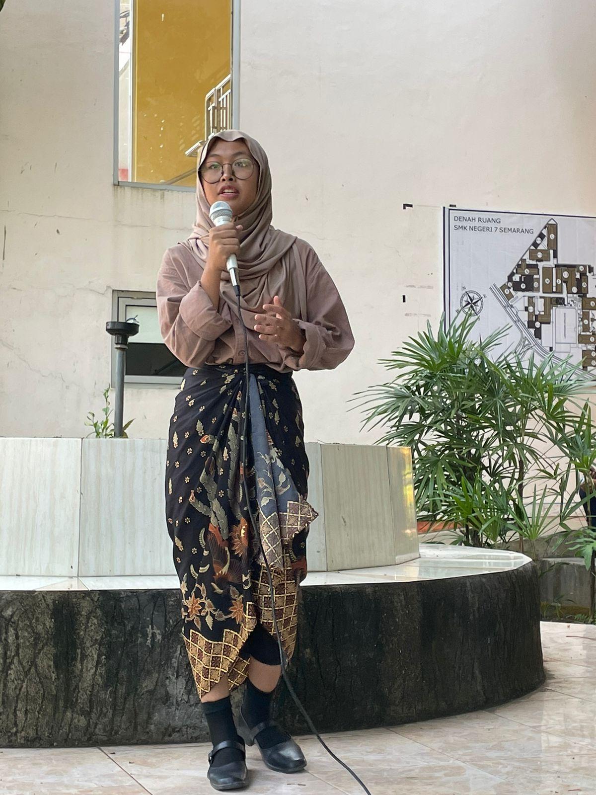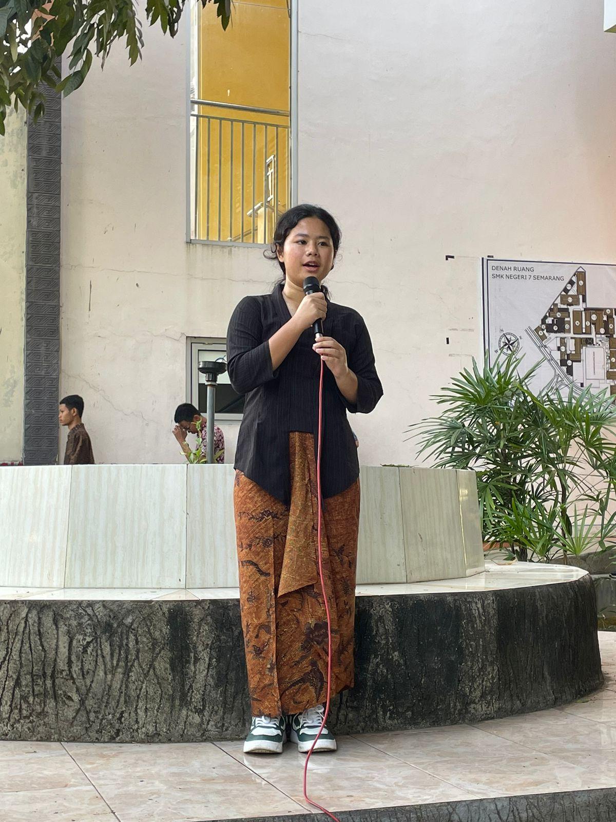 “Dalam rangka mendalami P5 dan bulan bahasa SMKN 7 mengadakan berbagai kegiatan seperti pemilihan ketua OSIS, madin 3D berbahasa Jerman, pidato berbahasa Inggris serta tidak meninggalkan kearifan lokal yaitu guyon waton,” kata Ayu koordinator panitia.