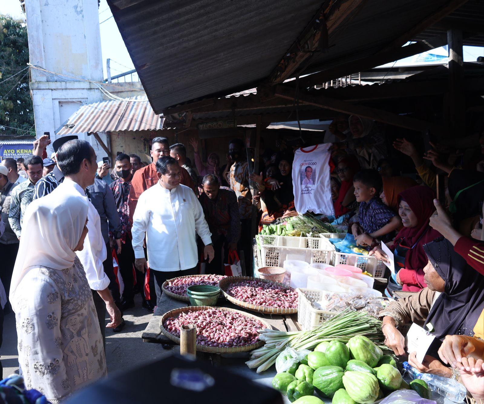 Menhan Prabowo Dampingi Presiden Jokowi Blusukan di Pasar Grogolan, Pekalongan