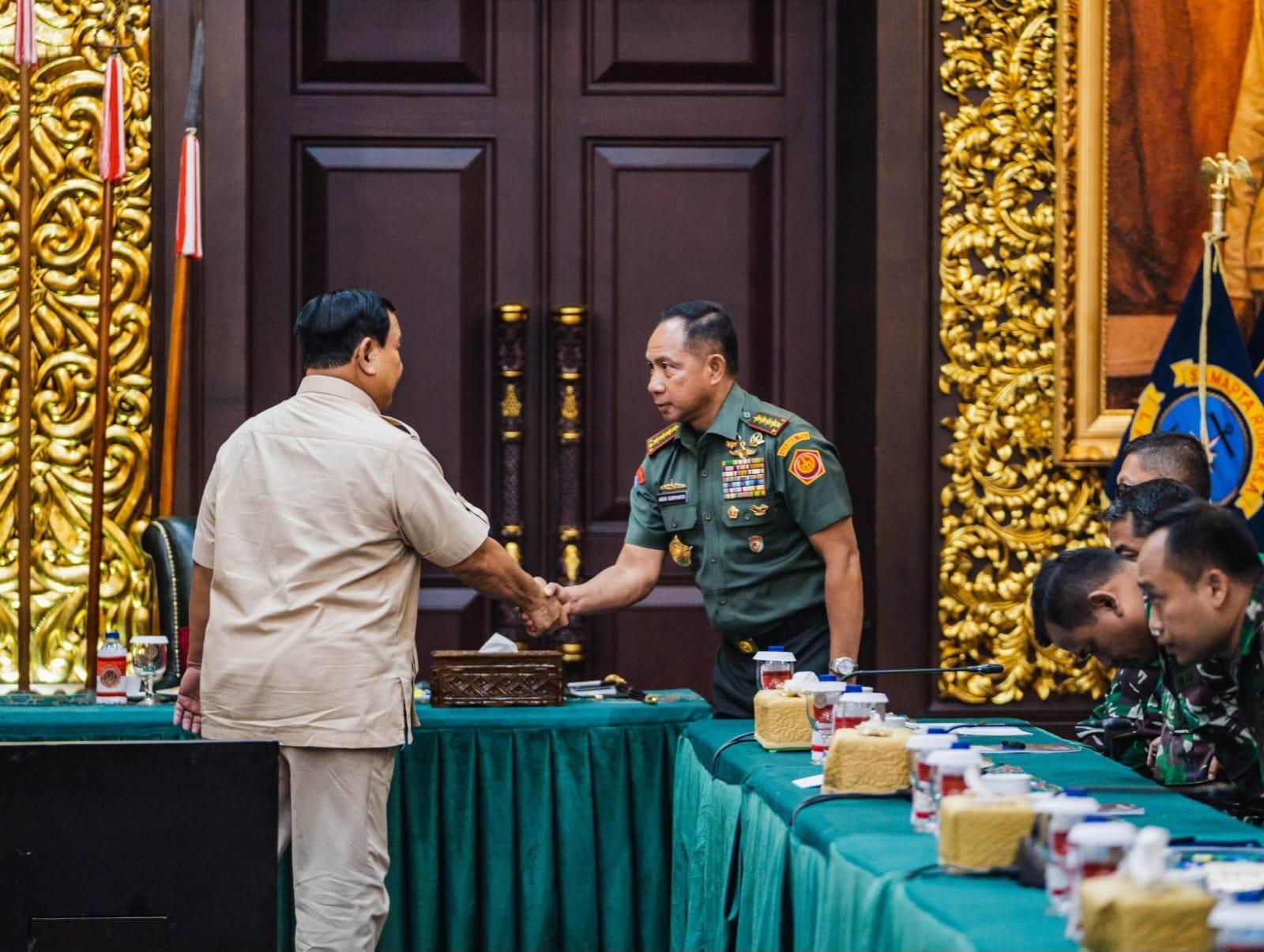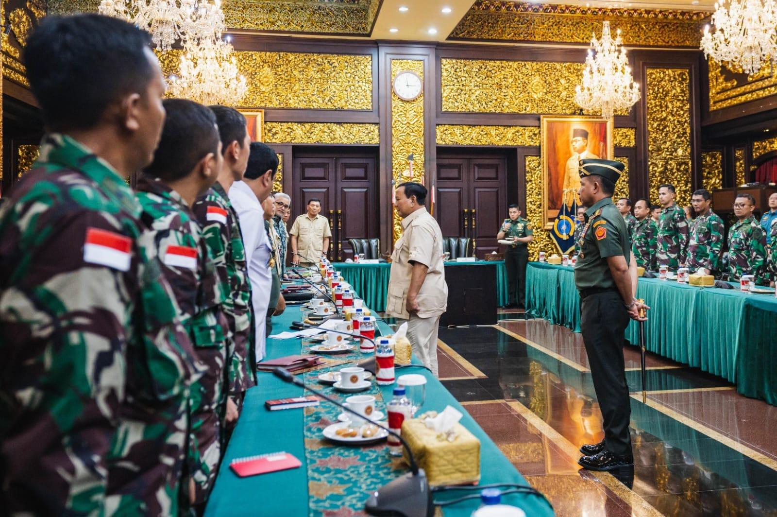 JAKARTA – Panglima TNI Jenderal TNI Agus Subiyanto mendampingi Menteri Pertahanan RI Prabowo Subianto memberikan pembekalan kepada 40 personel tenaga kesehatan (Nakes) TNI yang akan menjalan misi kemanusiaan di Gaza, bertempat di Ruang Bhinneka Tunggal Ika (BTI), Kantor Kementerian Pertahanan RI, Jakarta Pusat, Rabu (7/8/2024).