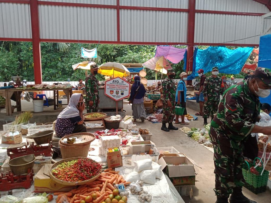 Dalam kegiatan tersebut Babinsa bersama petugas pasar Juwangi mensosialisasikan kepada pedagang dan pembeli tentang aturan protokol kesehatan dimasa pandemi virus Covid-19.
