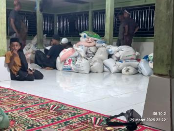 Berlangsungnya acara penyerahan Zakat fitrah turut hadir seluruh kepala keluarga yang mewakili anggota rumah tangga masing – masing.
