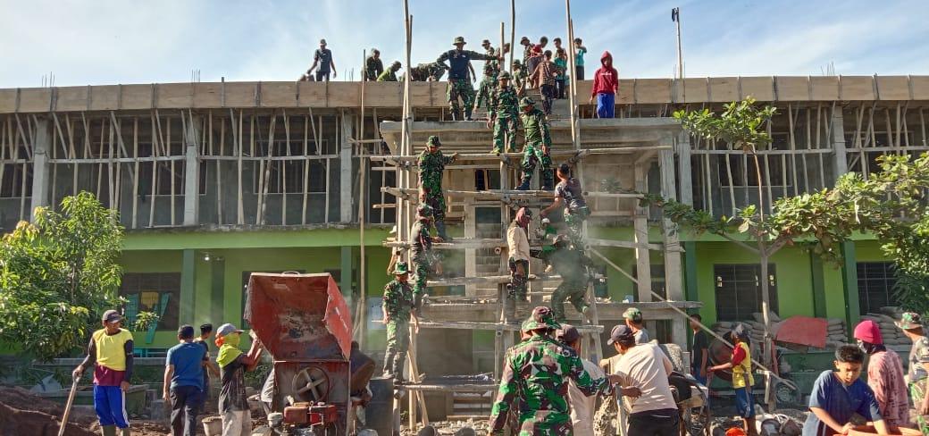 BANTAENG – Personil Kodim 1410 Bantaeng Berpartisipasi membantu meringankan beban masyarakat melaksanakan karya bakti pengecoran Lantai bangunan Pesantren As’adiyah Dapoko di Desa Ulugalung, Kecamatan Eremerasa, Kabupaten Bantaeng, Kamis (22/12/22).