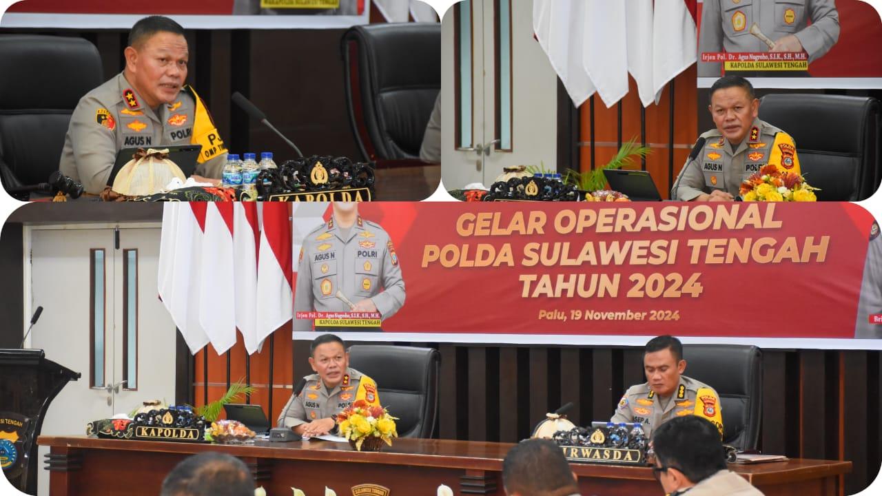 PALU – Kepala Kepolisian Daerah (Kapolda) Sulawesi Tengah (Sulteng), Irjen Pol Dr. Agus Nugroho, S.I.K., S.H., M.H., memimpin Gelar Operasional (GO) bulanan Polda Sulteng Tahun 2024, Selasa 19/11/2024 pagi, di ruang Rupatama Polda Sulteng.