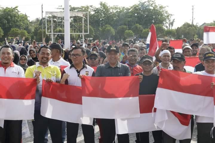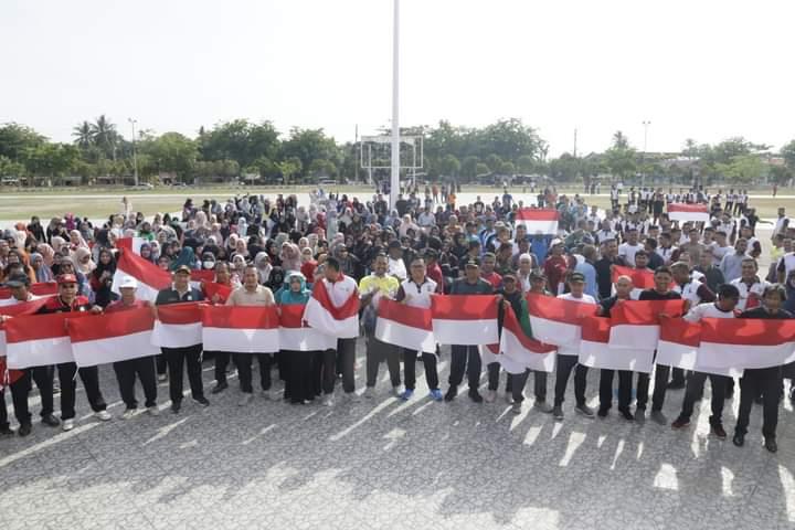 ACEH TIMUR – Penjabat Bupati Aceh Timur Amrullah M. Ridha membagi bendera merah putih untuk masyarakat. Pembagian bendera ini dikemas dalam acara launching gerakan pembagian 10 Juta bendera merah putih untuk masyarakat di Lapangan Upacara Pemerintah Kabupaten Aceh Timur, Jum’at (2/8/2024).