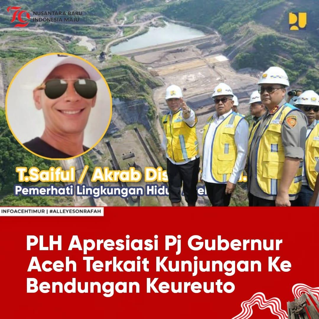 BANDA ACEH – Pemerhati Lingkungan Hidup (PHL) Aceh, T. Saiful Raja, mengapresiasi kunjungan Penjabat (Pj) Gubernur Aceh, Bustami Hamzah, beserta Forum Koordinasi Pimpinan Daerah (Forkopimda) Aceh ke Bendungan Keureuto di Desa Blang Pante, Kecamatan Paya Bakong, Kabupaten Aceh Utara.