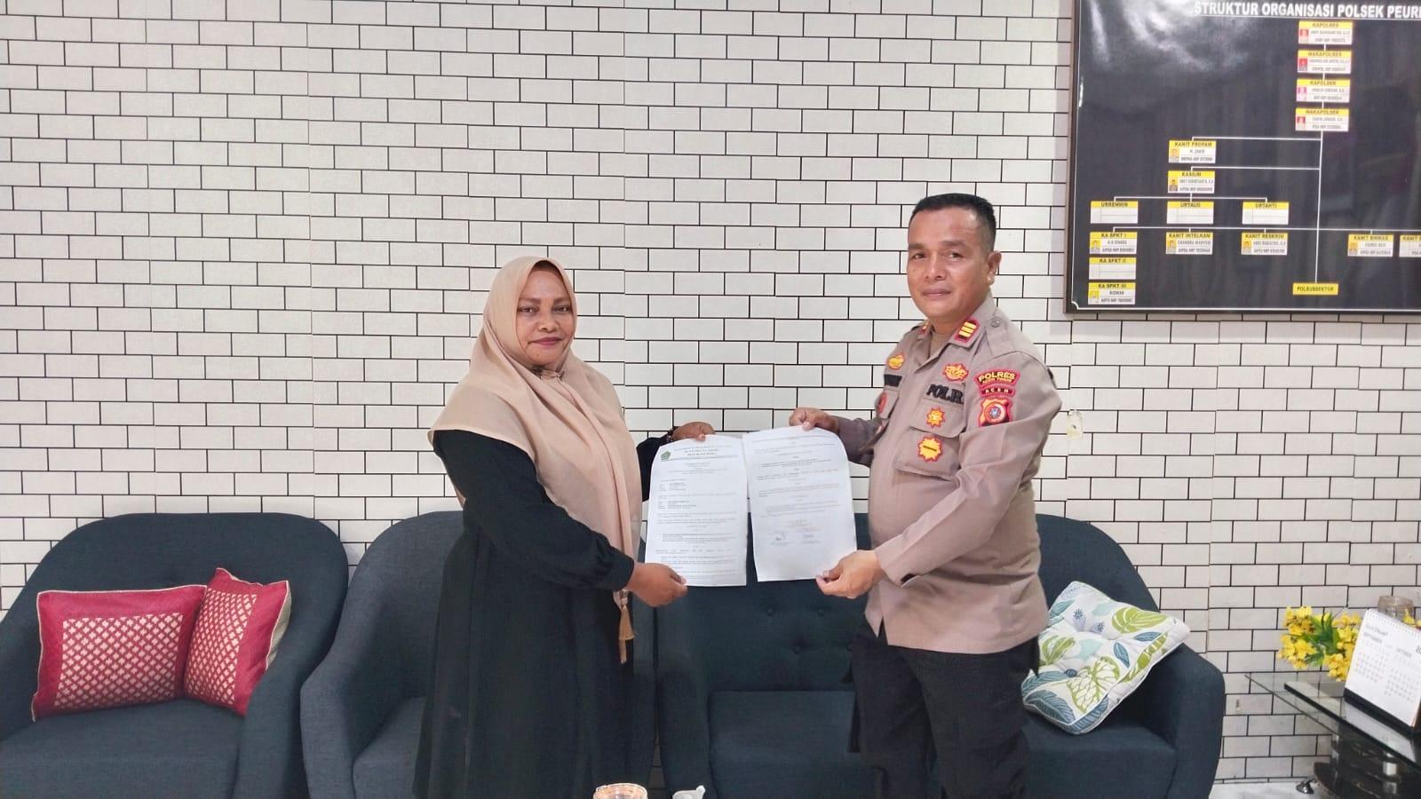 Kepala Polisi Sektor (Kapolsek) Peureulak AKP Muslim Siregar, S.H yang didampingi Wakapolsek dan para Kanit menyampaikan Kegiatan Polisi Sahabat Anak sebagai wujud kerja sama yang baik antara Polsek Peureulak dengan pihak sekolah lembaga pendidikan Islam RA Raudhatul Khaira.