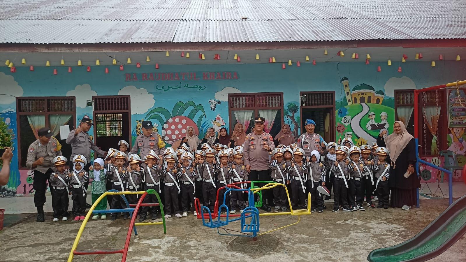 PEUREULAK – Dalam rangka menjadikan keberadaan sosok Polisi sebagai Sahabat Anak dan menanamkan kecintaan anak anak kepada Polisi sejak dini, Kapolsek Peureulak bersama jajaran dan personil menyambangi Lembaga Pendidikan Islam RA Raudhatul Khaira, Gampong Blang Bitra Kecamatan Peureulak, Kabupaten Aceh Timur, Rabu (20/9/2023).