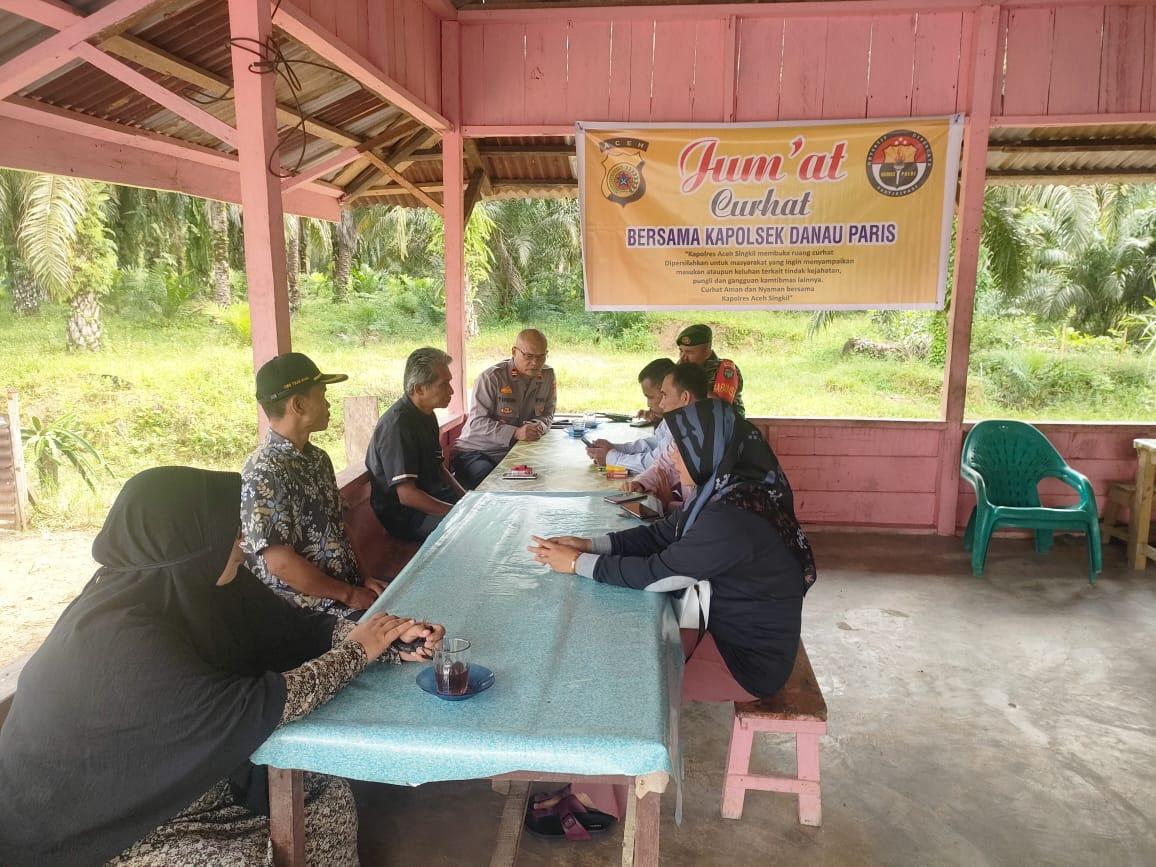ACEH SINGKIL – Polres Aceh Singkil melalui Sat Reskrim dan Polsek Danau Paris Serta Polsek Gunung Meriah melaksanakan kegiatan Jum’at Curhat. (Jumat 29/09/2023).