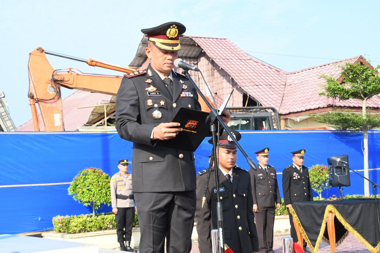 Upacara yang berlangsung di Lapangan Apel Sarja Arya Racana ini dipimpin oleh Kapolres Aceh Timur AKBP Andy Rahmansyah, S.I.K.,S.H.,M.H. diikuti pejabat utama, para Kapolsek, gabungan staf dan personel Polres Aceh Timur serta perwakilan anggota polsek.