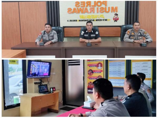 Kegiatan zoom meeting digelar diruang Bagian SDM Mapolres Mura, Pusat Perkantoran Agropolitan Center, Desa Muara Kati Baru, Kecamatan Muara Beliti, Kabupaten Mura, Jumat (27/12/2024).
