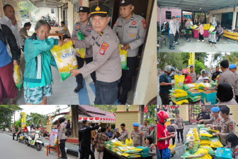 Sebanyak 10 ton beras didistribusikan secara serentak di lima lokasi berbeda: Mako Polresta Palu, Polsek Mantikulore, Polsek Palu Barat, Polsek Tawaeli, dan Polsek Palu Selatan, Senin (11/8/2025).