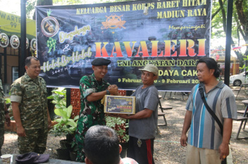 MADIUN – Prajurit Korps Kavaleri TNI AD di Madiun Raya memberikan bansos kepada masyarakat kurang mampu pada acara peringatan HUT ke-76 Kavaleri TNI AD sekaligus Halalbihal yang digelar di Ngrowo Bening Edu Park, Kota Madiun, Rabu (15/6/2026). Para prajurit tersebut berasal dari berbagai satuan di jajaran Korem 081/DSJ dan Secata Rindam V/Brawijaya.
