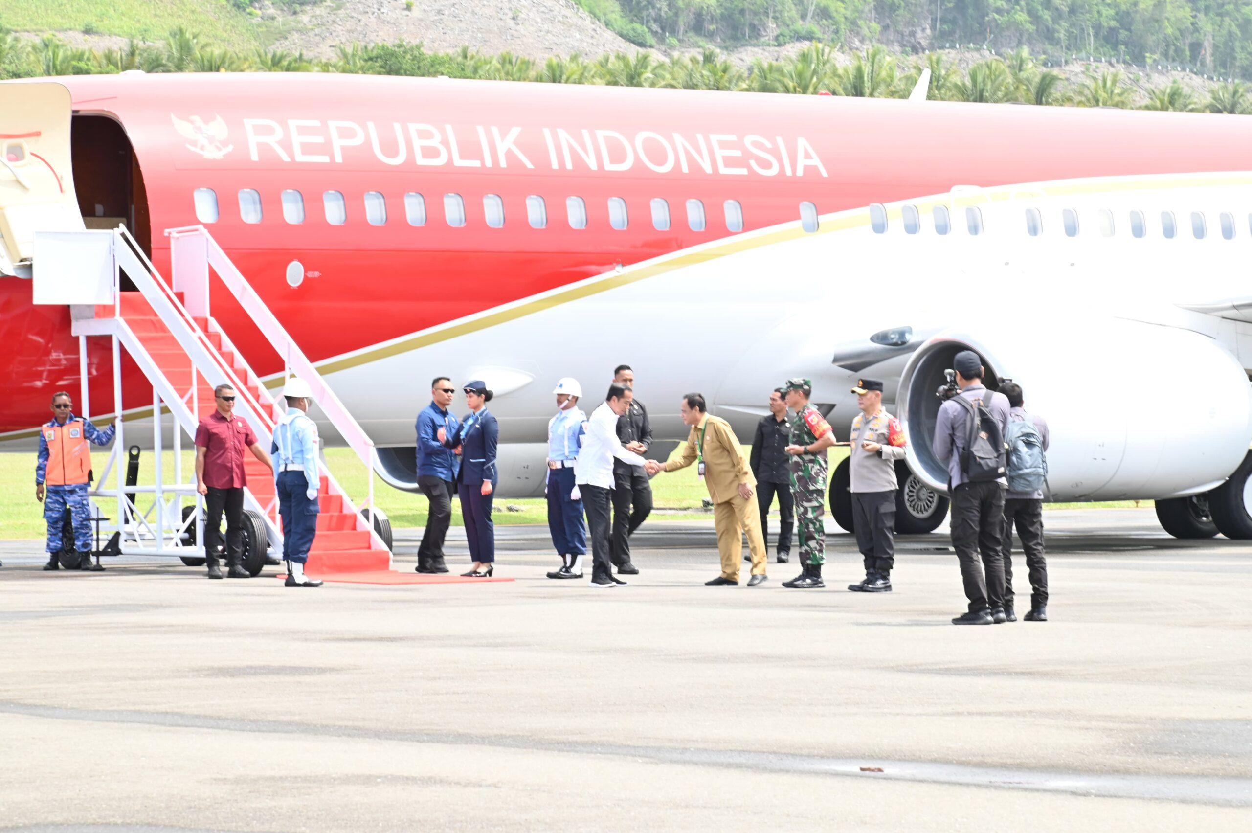 Setibanya di Bandara Syukuran Amiruddin Amir, Kabupaten Banggai, Selasa, (26/03) Pukul 10.35 WITA, Presiden bersama Menteri PUPR RI Basuki Hadi Muljono dan Menkes RI Budi Gunadi Sadikin didampingi Wakil Gubernur Sulawesi Tengah Ma’mun Amir dan Kapolda Sulteng beserta rombongan langsung menaiki Heli Super Puma untuk bertolak menuju Kabupaten Banggai Kepulauan (Bangkep) dalam rangka meresmikan pelaksanaan Instruksi Presiden Republik Indonesia (Inpres) Nomor 3 Tahun 2023 tentang Percepatan Peningkatan Konektivitas Jalan Daerah atau Inpres Jalan Daerah (IJD) di Kabupaten Bangkep, sekaligus Meninjau Pasar Tradisional dan sekaligus menyerahkan Bantuan Modal Kepada Pedagang Pasar.