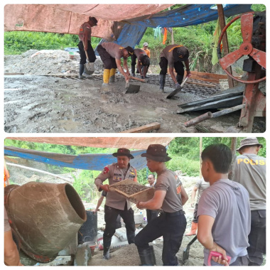 Pembangunan infrastruktur jembatan ini melibatkan sejumlah personel gabungan yang terdiri dari anggota Kompi 4 Batalion A Pelopor Sat Brimob Polda Sulawesi Tengah serta Sat Sabhara Polres Tolitoli. Mereka secara gotong royong bahu membahu melakukan pengecoran jembatan di Desa Silondou demi percepatan proyek ini.