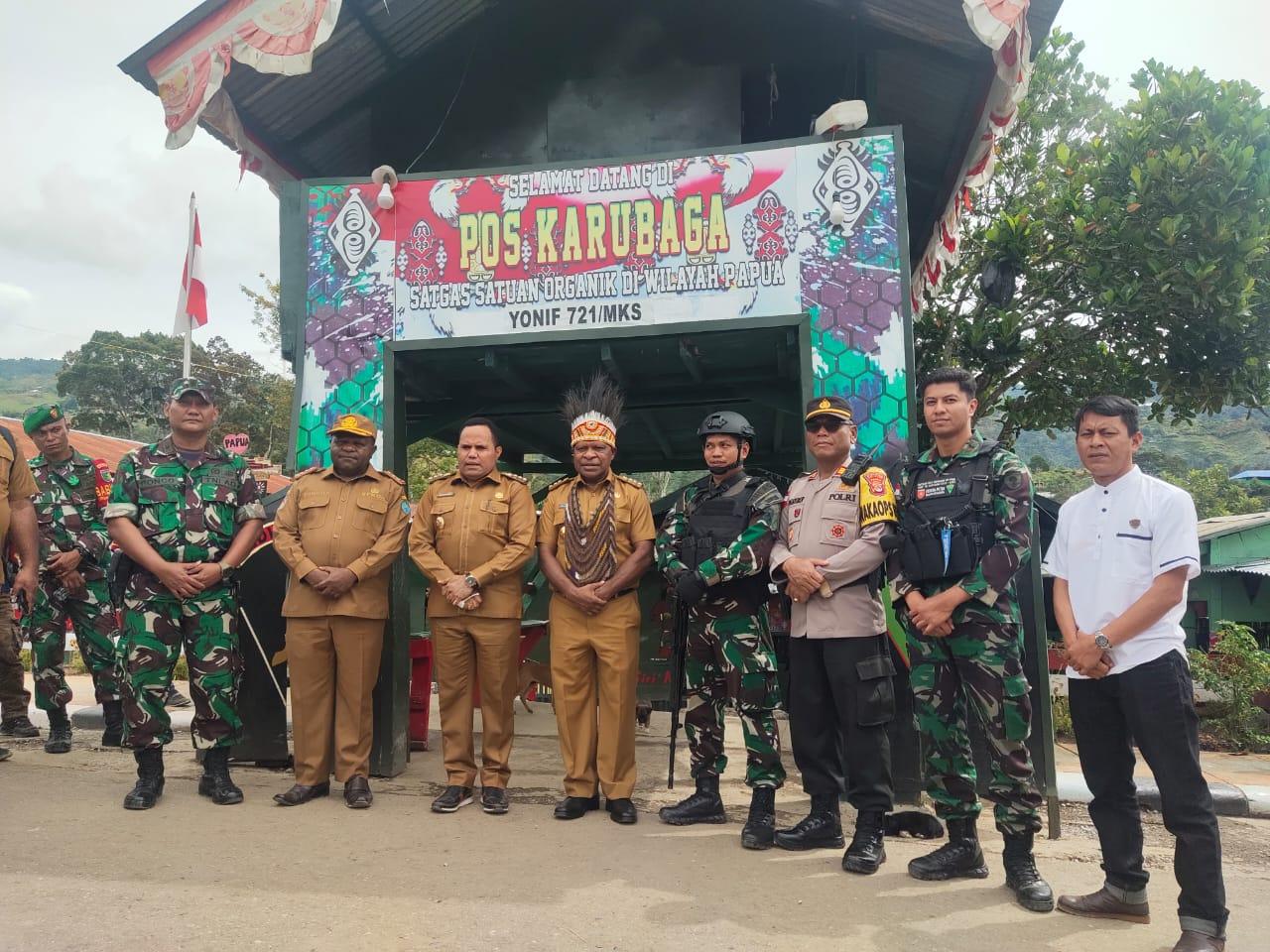 Dalam kegiatan ini Pj Gubernur Papua Pegunungan berkunjung ke Kodim Karubaga dan menyempatkan dirinya berkunjung ke Pos Karubaga Satgas Yonif 721/Mks.