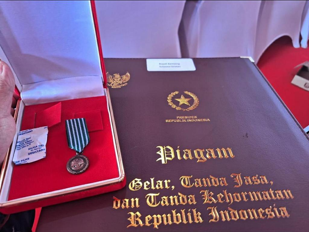 BANTAENG – Bupati Bantaeng Ilham Azikin menerima Penganugrahan Tanda Kehormatan Satyalancana Wira Karya pada puncak Hari Keluarga Nasional (Harganas) ke-30 tahun 2023 di Tanjung Balai, Kabupaten Banyuasin, Provinsi Sematera Selatan, Kamis (6/7).