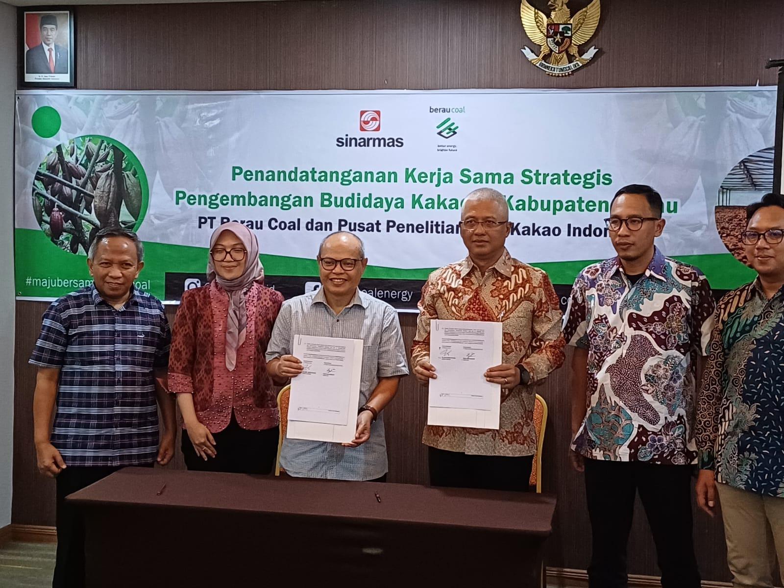 JEMBER – PT Berau Coal bersama Pusat Penilitian Kopi dan Kakao (Puslitkoka), PT Riset Perkebunan Nusantara menandatangani MoU di Jember (16/2/2024) untuk tindak lanjut pengembangan Kakao sebagai salah satu sektor unggulan di Kabupaten Berau. Momentum ini menjadi wujud komitmen PT Berau Coal dalam mengangkat potensi kakao serta mendorong kemandirian ekonomi masyarakat di Kabupaten Berau. Kegiatan ini dihadiri langsung oleh Direktur Operasional & HSE PT Berau Coal, Arief Wiedhartono dan Direktur PT Riset Perkebunan Nusantara (RPN), Dr. Ir. Iman Yani Harahap, MS serta turut hadir juga beberapa jajaran manajemen dari PT Berau Coal, PT Riset Perkebunan Nusantara, dan Puslitkoka.