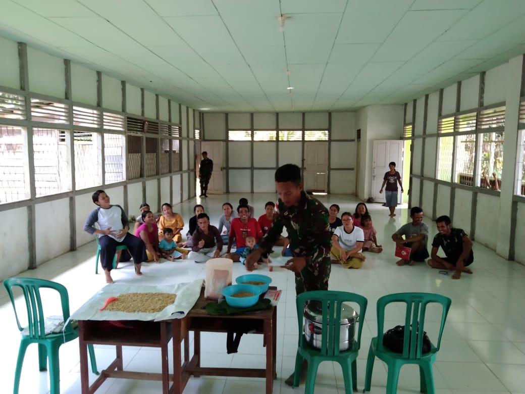 Disampaikan bahwa prajurit Pos Palapasang yang dipimpin oleh Serka Putra Jati memberikan ilmu pembuatan tempe kepada masyarakat sebagai bentuk kepedulian Satgas tergadap masyarakat perbatasan khususnya di Dsn. Palapasang.