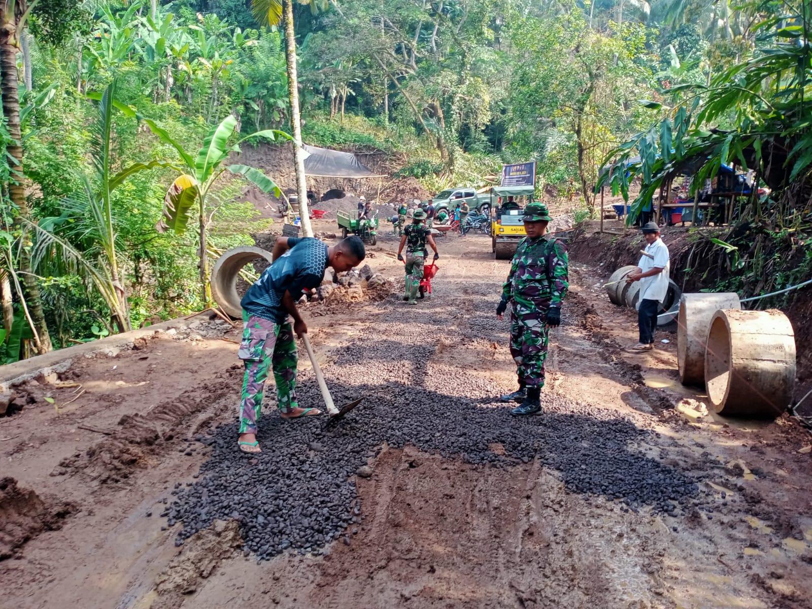 Kendati kondisi jalan yang baru dibuka telah mencapai 100 % (telah tembus), namun capaian rata-rata baru 58,3 %, dan pasca turun hujan becek serta gampang amblas sangat wajar mengingat waktu pengerjaan baru berjalan kurang lebih dua pekan sejak dibuka TMMD pada (20/02/24). Seluruh progres sarana fisik pendukung lainnya terus dikerjakan seperti drainase telah mencapai 90 %, gorong-gorong 70 %, senderan 75 %, betonisasi 25 % dan leneng telah mencapai 21 %.